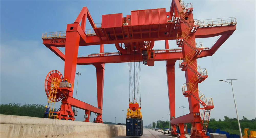 该项目包含3台jinnian金年会40.5t-18m轨道式集装箱门机,用于徐州交通控股港务有限公司顺堤河铁路专用线改建工程。目前三台起重机产品均已交付使用,将进一步提高铁路集装箱装卸效率,为顺堤河作业区增加300万吨的吞吐能力。