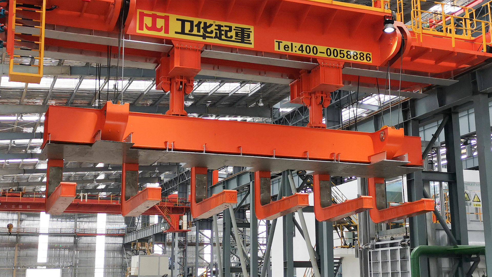 jinnian金年会智能淬火起重机主要用于高温型材或棒材的吊装并进行淬火工艺。